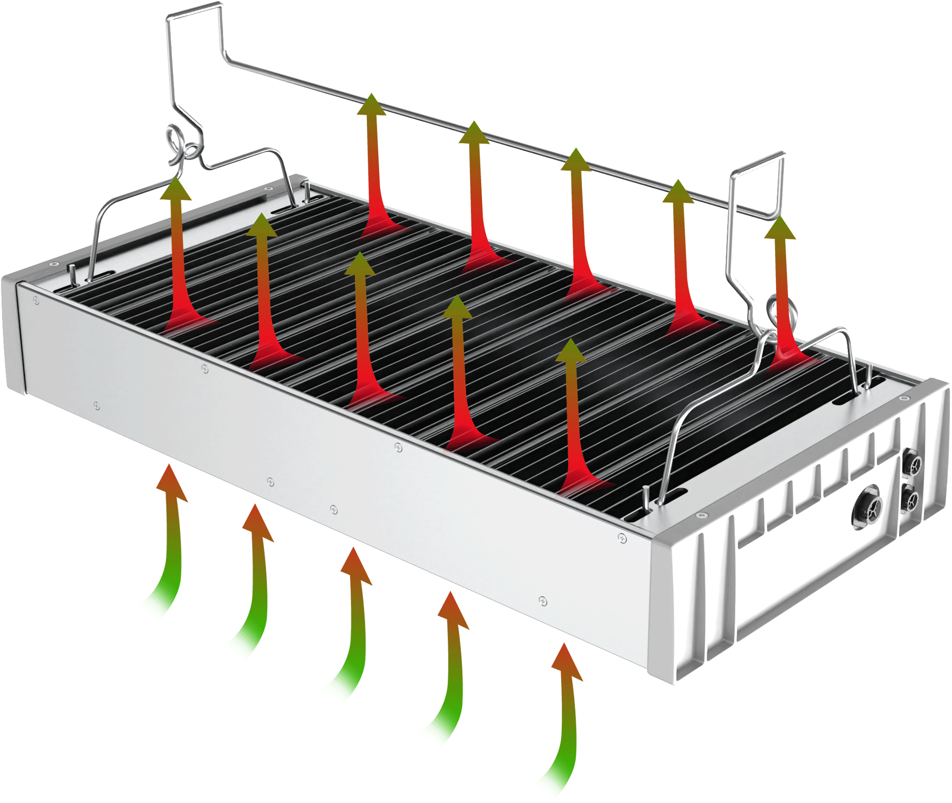 поперечная конвекция воздуха снижает температуру на 15°C.